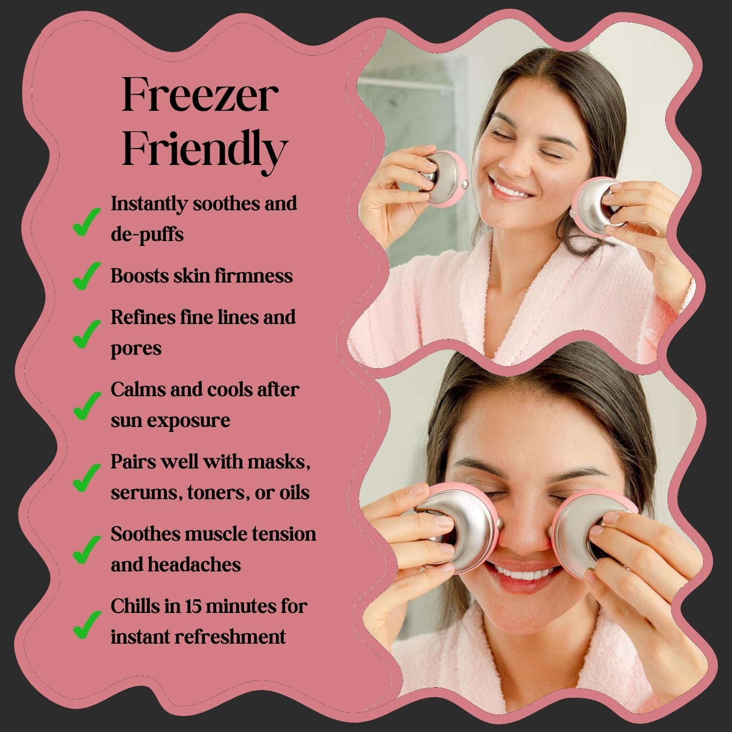 Heat to relax, chill to depuff — one tool, two powerful skincare sensations.